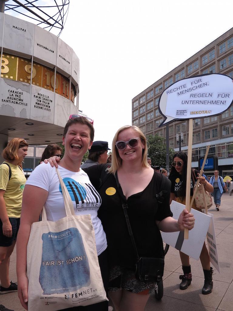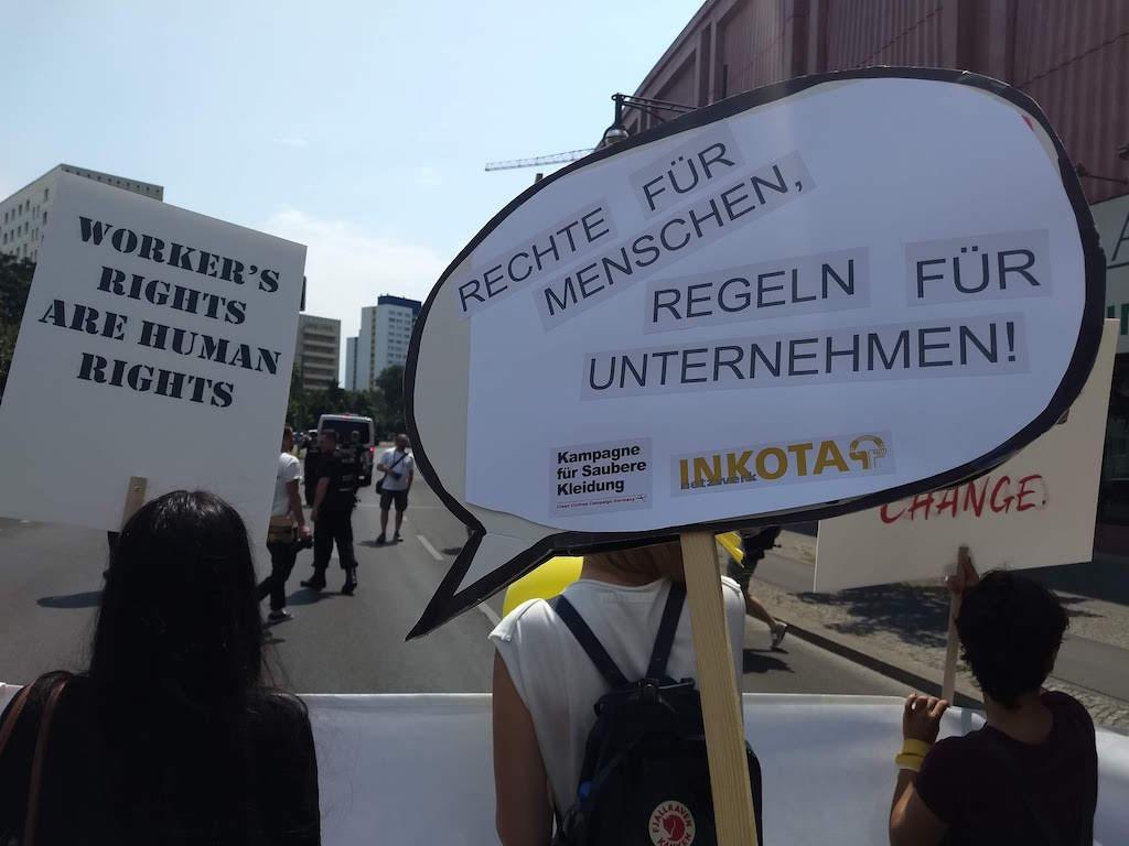 Ein breites Bündnis – darunter unsere Mitgliedsorganisationen FEMNET & INKOTA-netzwerk sowie unsere Berliner Aktionsgruppe – machte sich dafür stark, für die Rechte der Menschen und Umweltstandards. Faire Mode ist längst schon bereit für den Massenmarkt, doch es bedarf politischer Unterstützung.