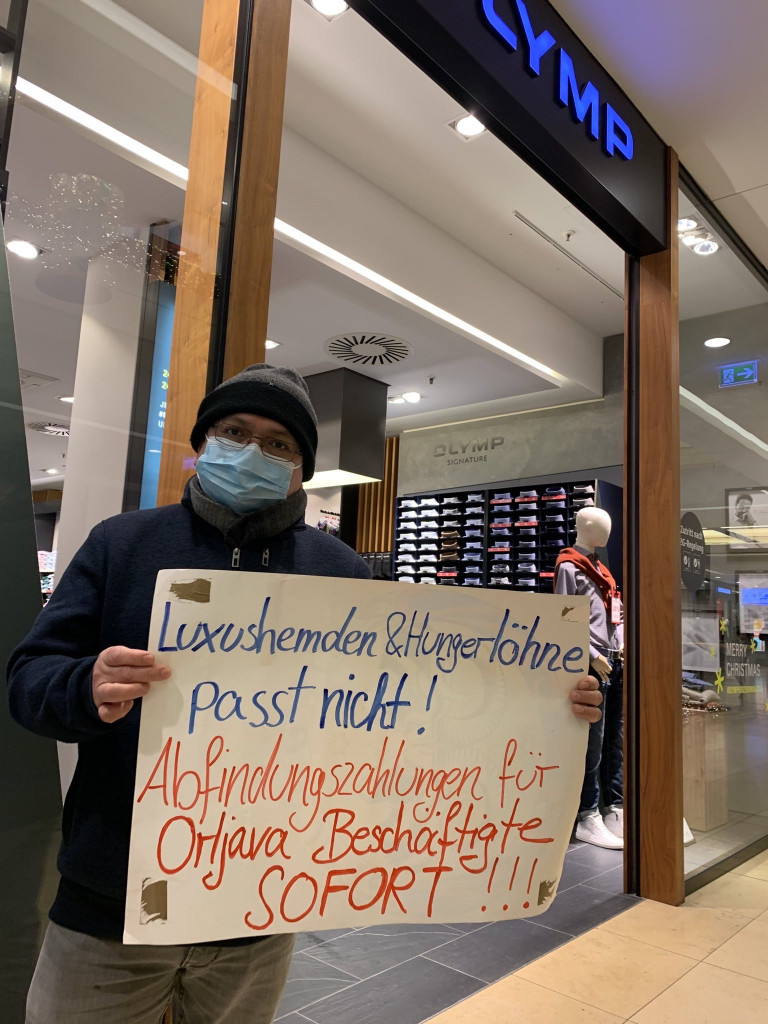 Orljava ist eine Bekleidungsfabrik in Požega, einer Stadt im östlichen Teil Kroatiens. Orljava produziert seit über einem halben Jahrhundert Business-Hemden für die deutsche Qualitätshemdenmarke Olymp, die im Jahr 2019 ihr 50-jähriges Bestehen feierte. Ein „goldenes Jubiläum“ wie sie es nannten. Vor der COVID19-Pandemie beschäftigte Orljava etwa 300 Mitarbeiter*innen. Dann begann Olymp, das mit mehr als 80% der Aufträgen Hauptabnehmer von Orljava war, die Aufträge drastisch zu kürzen. Seit April 2021 haben sie nichts mehr bestellt. Die Folge: Ein Drittel der Belegschaft wurde entlassen – mehr als 150 Arbeiter*innen verloren ihre Existenzgrundlage.