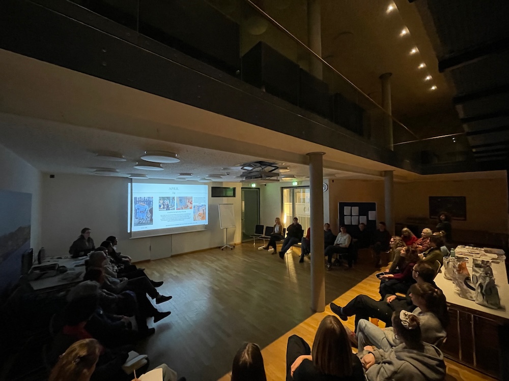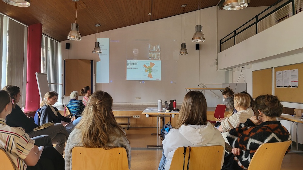 So waren alle Teilnehmer:innen gut vorbereitet auf einen inputreichen und aktiven Workshopsamstag. Aktionen zur EM, provokative und öffentlichkeitswirksame Ideenpräsentation und inhaltliche Arbeit zum Thema ‚Just Transition in der Bekleidungsindustrie‘ füllten den Vormittag. Der Nachmittag widmete sich den Mühen der Ebene: Finden und Halten von Ehrenamtlichen und Fundraising. Ein kreativer Upcycling-Workshop brachte alle Teilnehmer:innen mit Transparent und Rufchor zu einer kleinen Hinterhofaktion zusammen.