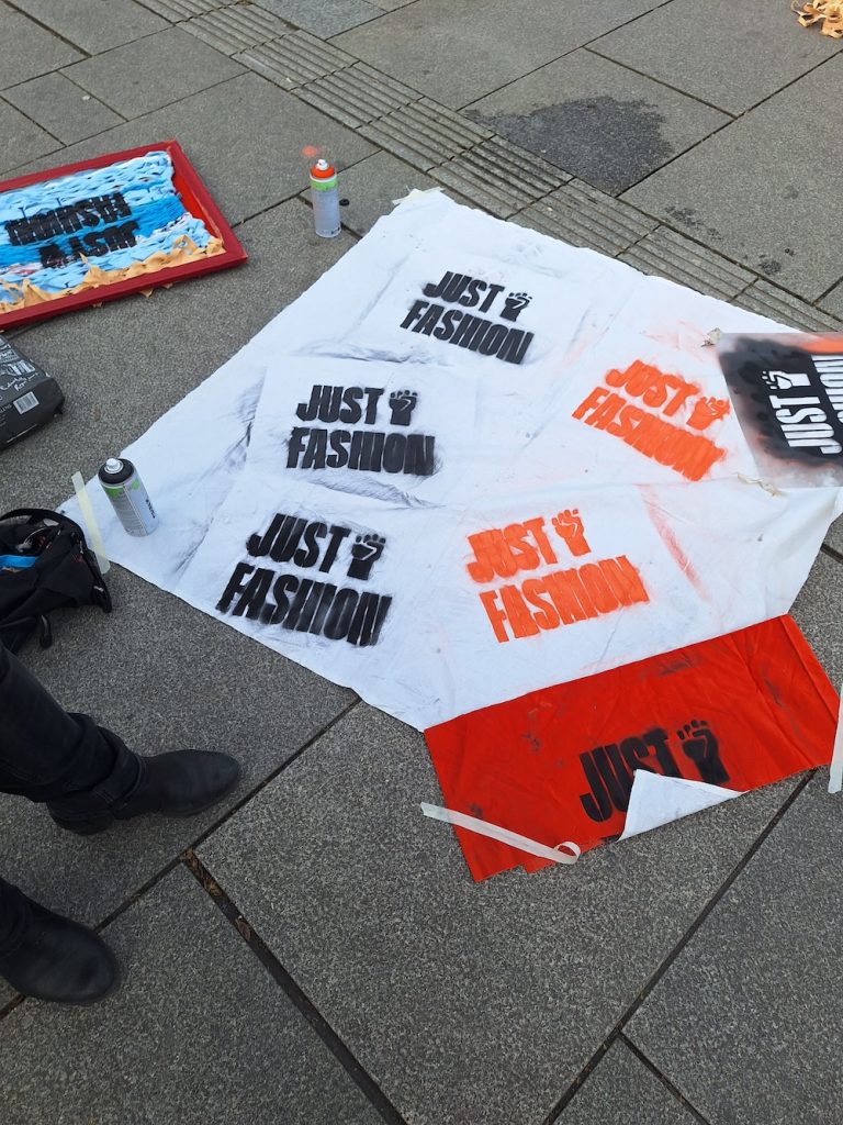 Die Textilindustrie zählt zu den umweltschädlichsten Branchen weltweit – etwa 10 % der globalen CO₂-Emissionen gehen auf ihr Konto. Gleichzeitig herrschen in vielen Produktionsstätten weiterhin prekäre Bedingungen. Wir diskutierten auf dem Aktionstreffen verschiedene Methoden für Bildung und Aufklärungsarbeit und politische Forderungen, um einen gerechten Wandel zu bewirken. Falls ihr noch mehr zur Einleitung über „Just Transition“ erfahren wollt, schaut unsere Blogbeiträge an: Just Transition – auf dem Weg in eine gerechtere Welt? | SÜDWIND Blog oder Fashioning a Just Transition – Fragen zur Debatte | SÜDWIND Blog